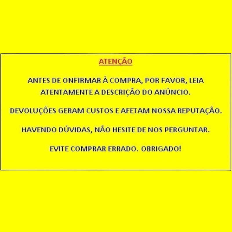 Atenção: Confira o código da peça antes de finalizar sua compra. Não aceitamos devolução por desistência, então certifique-se antes de efetuar a compra!!